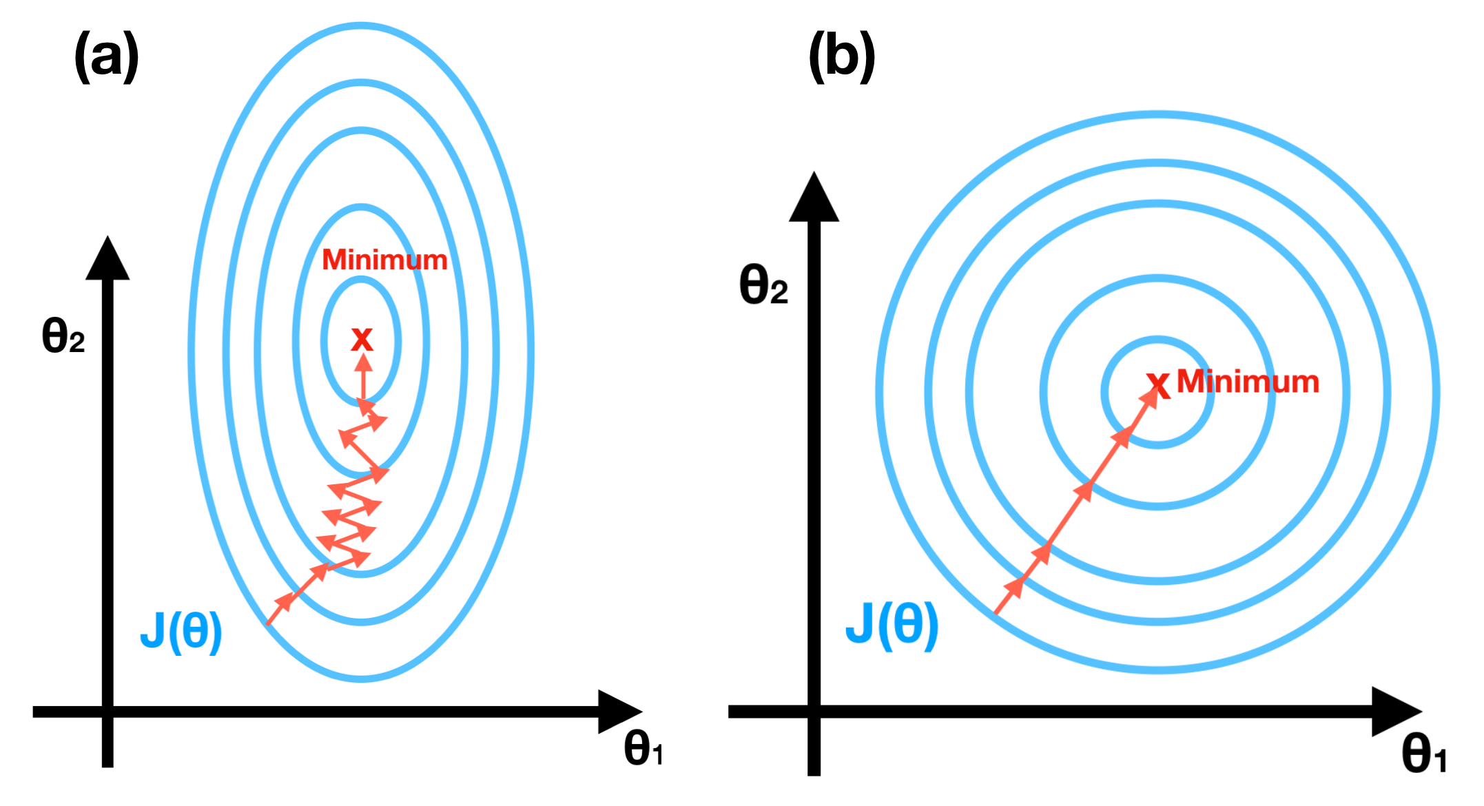 In this segment, we provide two skills, Feature Scaling and Learning Rate, to ensure the gradient descent will work well. Feature Scaling, also called normalized features. With different range of each feature, the contours may be extremely skinny, which will make Gradient Descent suffer from extremely slow, see Figure(a). After feature scaling, the outcome shows in Figure(b). It’s worth making sure that the features are on a similar scale and roughly within the range [-1, 1].