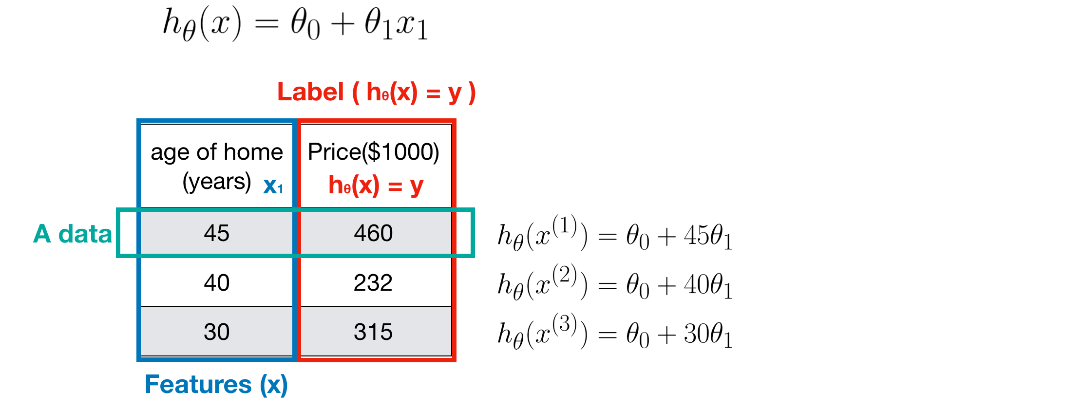 Note that there is only one true model for the data. Unfortunately, we don’t know what the true model is. And in order to find the true one, we make a hypothesis, tuning it until we can check if it is close enough to the true model or it is a wrong one (according to the criterion such as accuracy, precision, F1 score etc.). If the hypothesis is wrong, then make another one and tune it. When choosing a model, be utmost care about making the hypothesis. Per above housing price example, suppose the true model for the data is linear, then we can try to use linear regression and its hypothesis function.